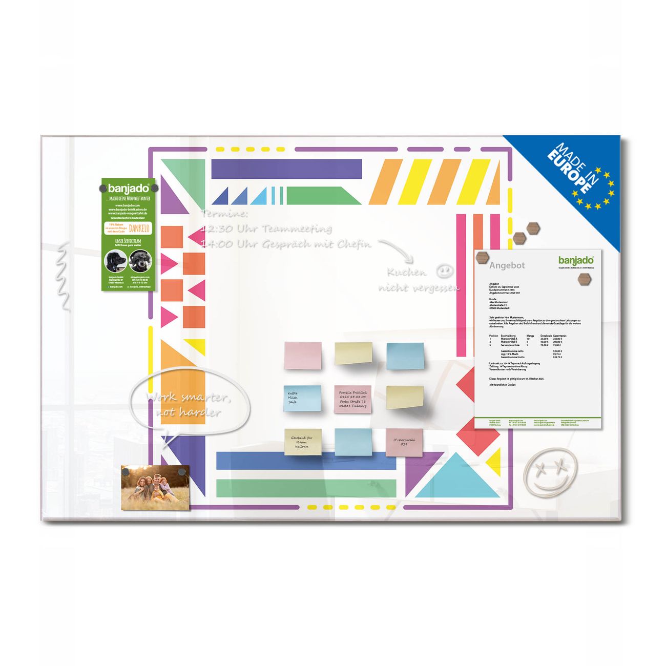 Glas Magnettafel im Querformat Motiv Bunter Geometrischer Rahmen 2