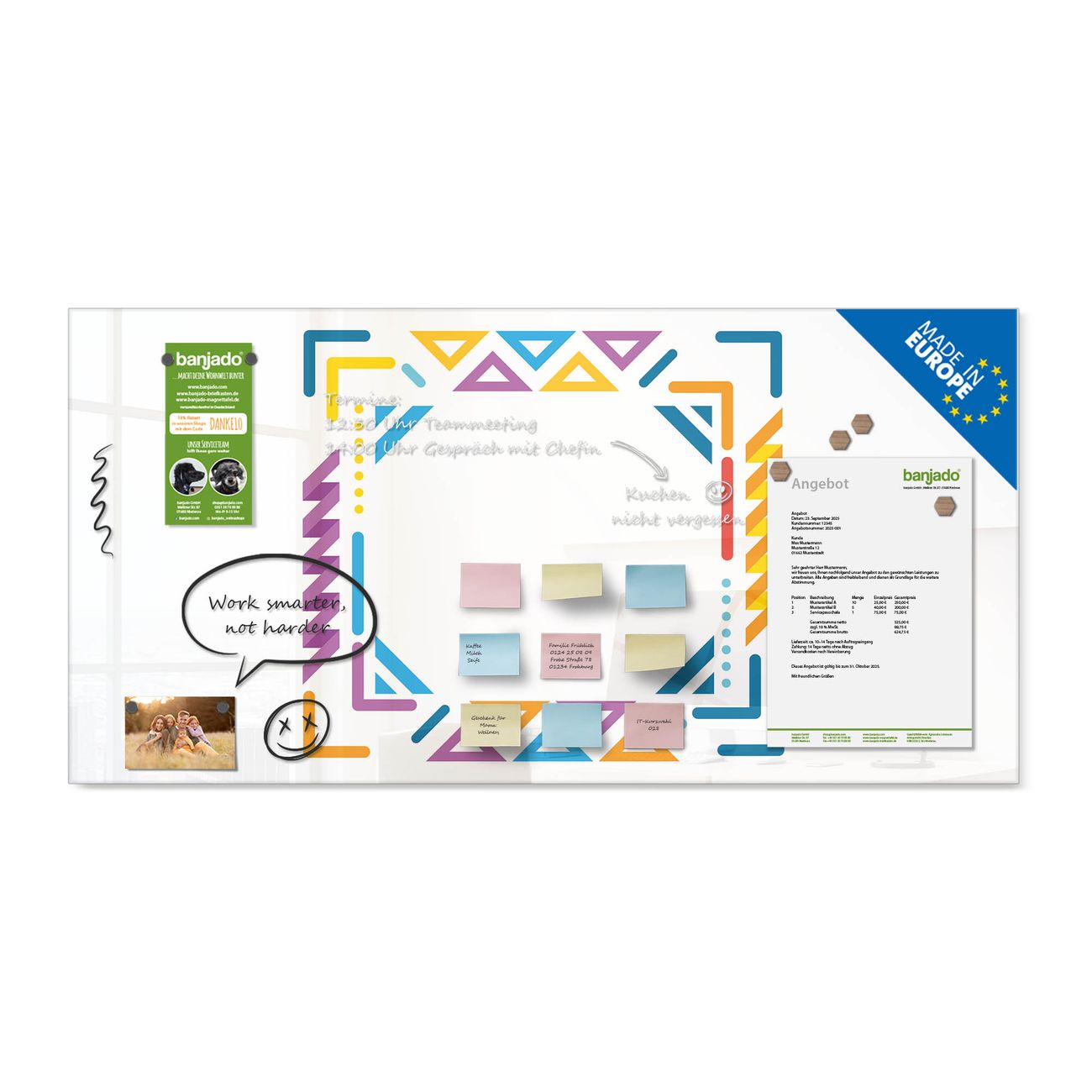 Glas Magnettafel im Querformat Motiv Bunter Geometrischer Rahmen