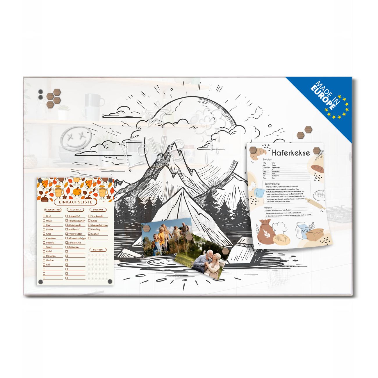 Ein Stück Design, das Ihren Alltag organisiert. Schreiben, heften, inspirieren - alles an einem Ort. Qualität, die man spürt. Montage leicht gemacht. Handwerk mit Herz - veredelt in Sachsen. Einzigartiges Design mit Motiv Motiv Camping im Mondschein Beschreibbare Glasoberfläche, leicht zu reinigen Starke Magnetkraft durch Stahlrückwand Inklusive 4 Neodym-Magneten Flexible Montageoptionen Handveredelt in Sachsen - Qualität, die bleibt