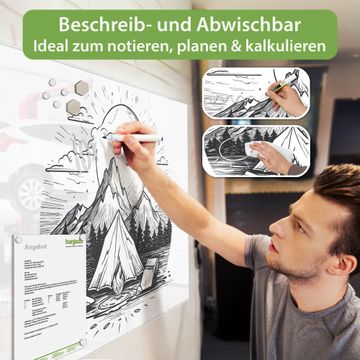 Gefertigt aus gehärtetem Sicherheitsglas mit einer magnetischen Rückwand aus Stahl überzeugt diese Magnettafel durch Stabilität und Langlebigkeit. Die Oberfläche bleibt dauerhaft brillant und pflegeleicht, selbst bei täglicher Nutzung.