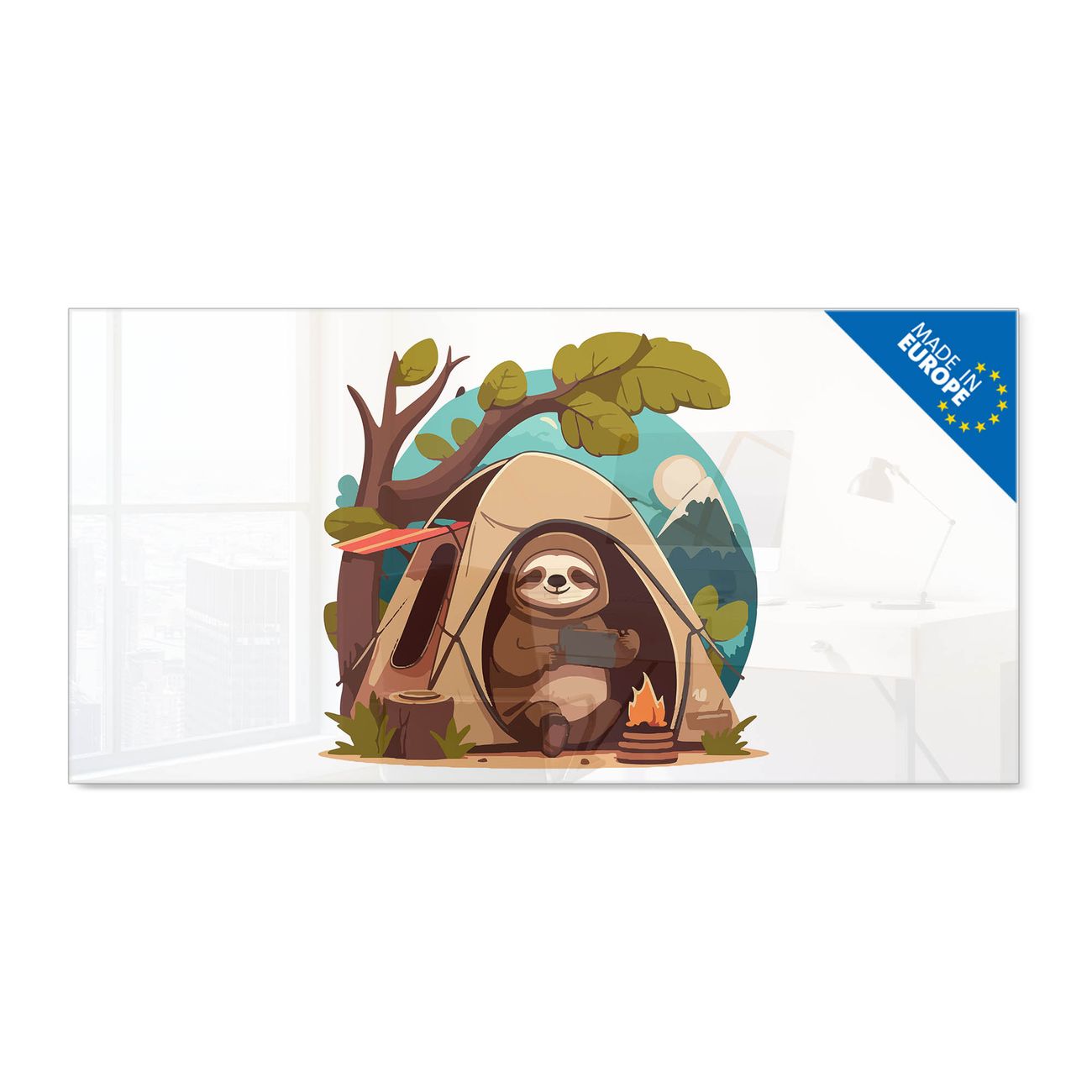 Glas Magnettafel im Querformat Motiv Camping mit Faultier