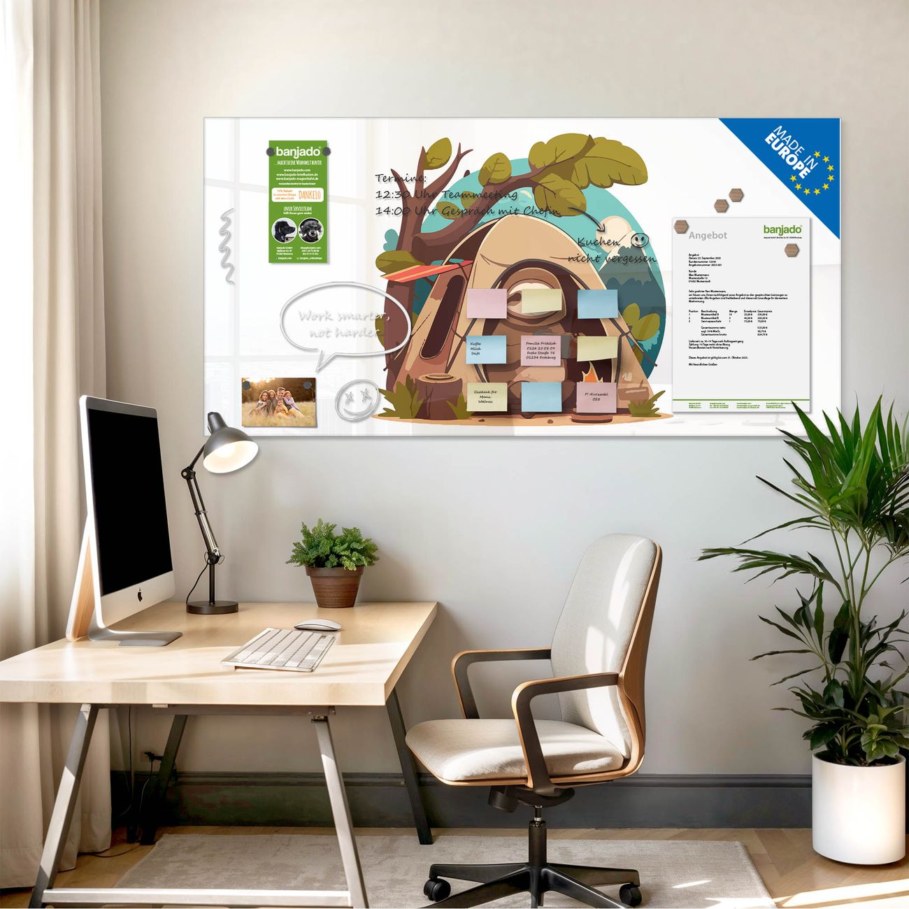 Jede Glas Magnettafel wird in unserer Werkstatt von Hand gefertigt und sorgfältig geprüft. So erhalten Sie ein echtes Qualitätsprodukt, das Funktion und Ästhetik perfekt vereint.?? Warum banjado?