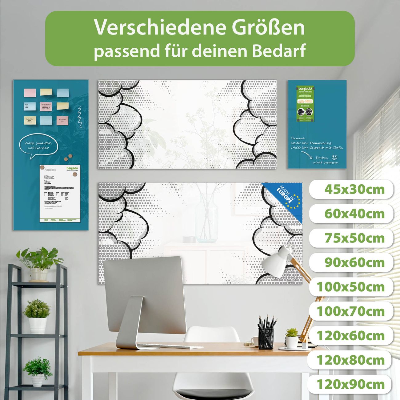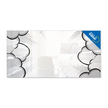 Material: 4mm Sicherheitsglas mit Metallrückwand Eigenschaften: beschreibbar, magnetisch, kratzfest Maße: 100x50x0,6cm, 7,50kg schwer Motiv Nummer 13510 Comic Explosion Zubehör: inklusive 4 Neodym-Magnete