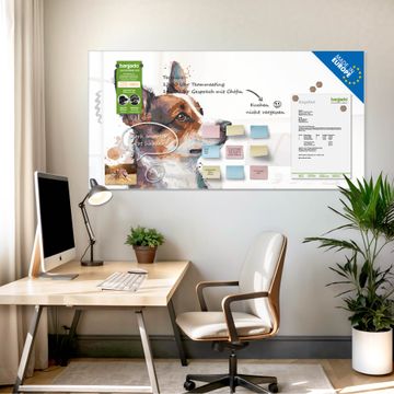 Die banjado Glas Magnettafel mit dem Motiv Motiv Corgi Aquarell verbindet Funktionalität mit Stil. Sie ersetzt das Zettelchaos durch klare Strukturen und bringt dabei eine warme, natürliche Atmosphäre in Ihr Zuhause. Ob im Büro, in der Küche oder im Eingangsbereich - dieses Design-Board zieht Blicke an und sorgt für Ordnung mit Charakter.
