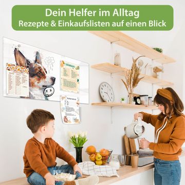 Auf der glatten Glasoberfläche lassen sich Termine, Rezepte oder Notizen ganz einfach mit Kreidestiften festhalten und rückstandslos entfernen. Starke Neodym-Magnete halten Ihre wichtigsten Erinnerungen sicher an Ort und Stelle. So entsteht Ihre ganz persönliche Ideenwand - jeden Tag neu.