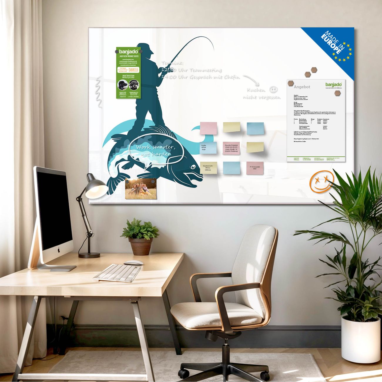 Die banjado Glas Magnettafel mit dem Motiv Motiv Der Angler verbindet Funktionalität mit Stil. Sie ersetzt das Zettelchaos durch klare Strukturen und bringt dabei eine warme, natürliche Atmosphäre in Ihr Zuhause. Ob im Büro, in der Küche oder im Eingangsbereich - dieses Design-Board zieht Blicke an und sorgt für Ordnung mit Charakter.