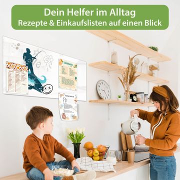 Auf der glatten Glasoberfläche lassen sich Termine, Rezepte oder Notizen ganz einfach mit Kreidestiften festhalten und rückstandslos entfernen. Starke Neodym-Magnete halten Ihre wichtigsten Erinnerungen sicher an Ort und Stelle. So entsteht Ihre ganz persönliche Ideenwand - jeden Tag neu.