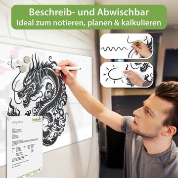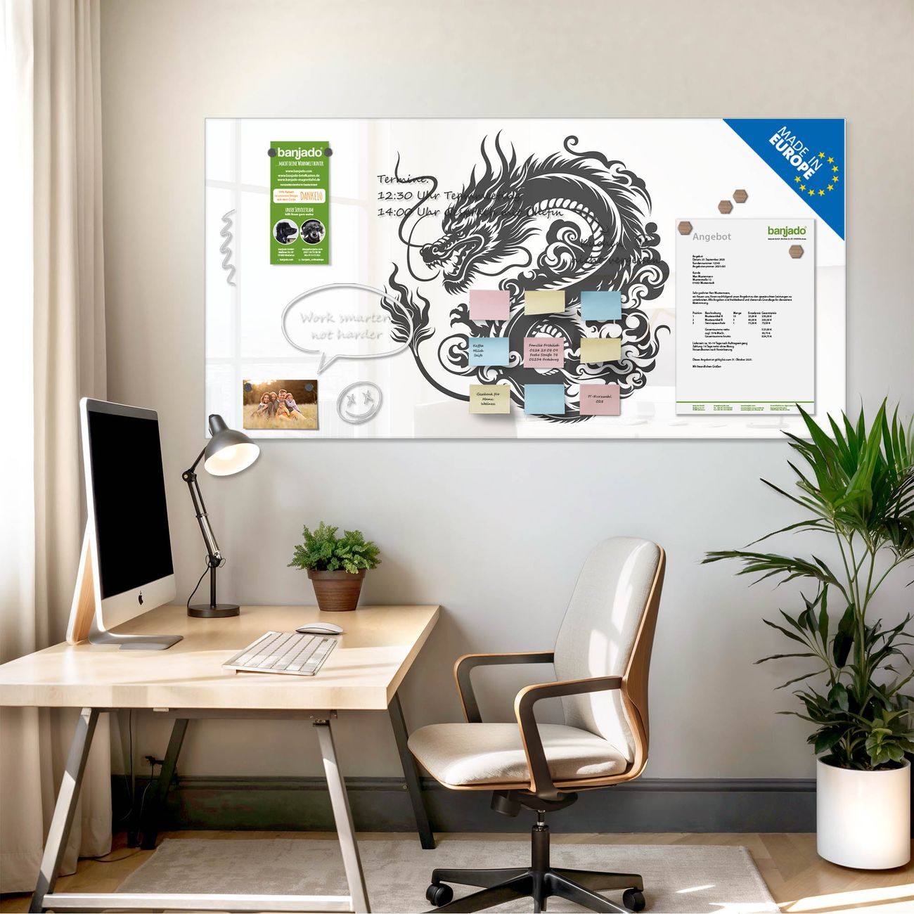 Die banjado Glas Magnettafel mit dem Motiv Motiv Drachenkunst verbindet Funktionalität mit Stil. Sie ersetzt das Zettelchaos durch klare Strukturen und bringt dabei eine warme, natürliche Atmosphäre in Ihr Zuhause. Ob im Büro, in der Küche oder im Eingangsbereich - dieses Design-Board zieht Blicke an und sorgt für Ordnung mit Charakter.