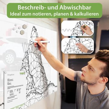 Auf der glatten Glasoberfläche lassen sich Termine, Rezepte oder Notizen ganz einfach mit Kreidestiften festhalten und rückstandslos entfernen. Starke Neodym-Magnete halten Ihre wichtigsten Erinnerungen sicher an Ort und Stelle. So entsteht Ihre ganz persönliche Ideenwand - jeden Tag neu.