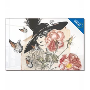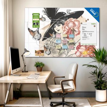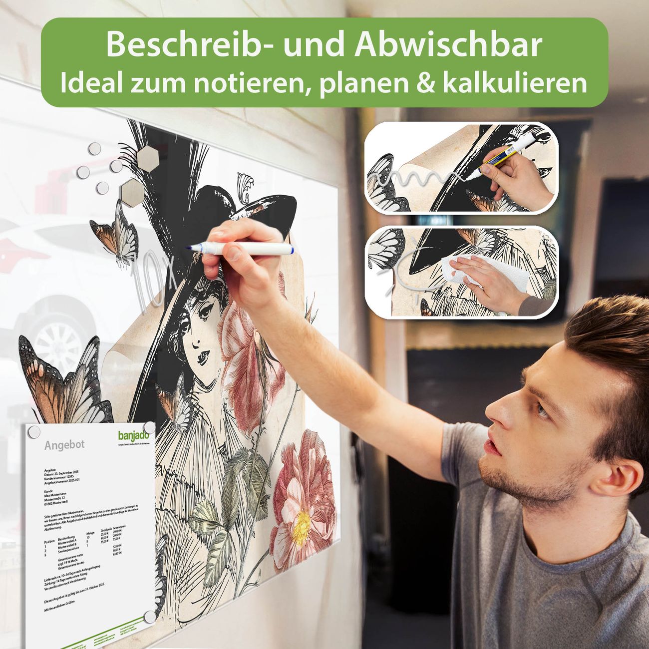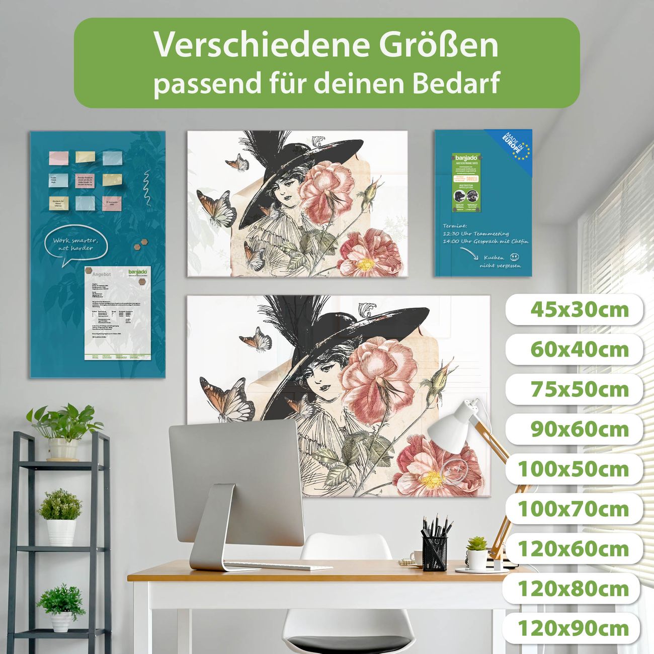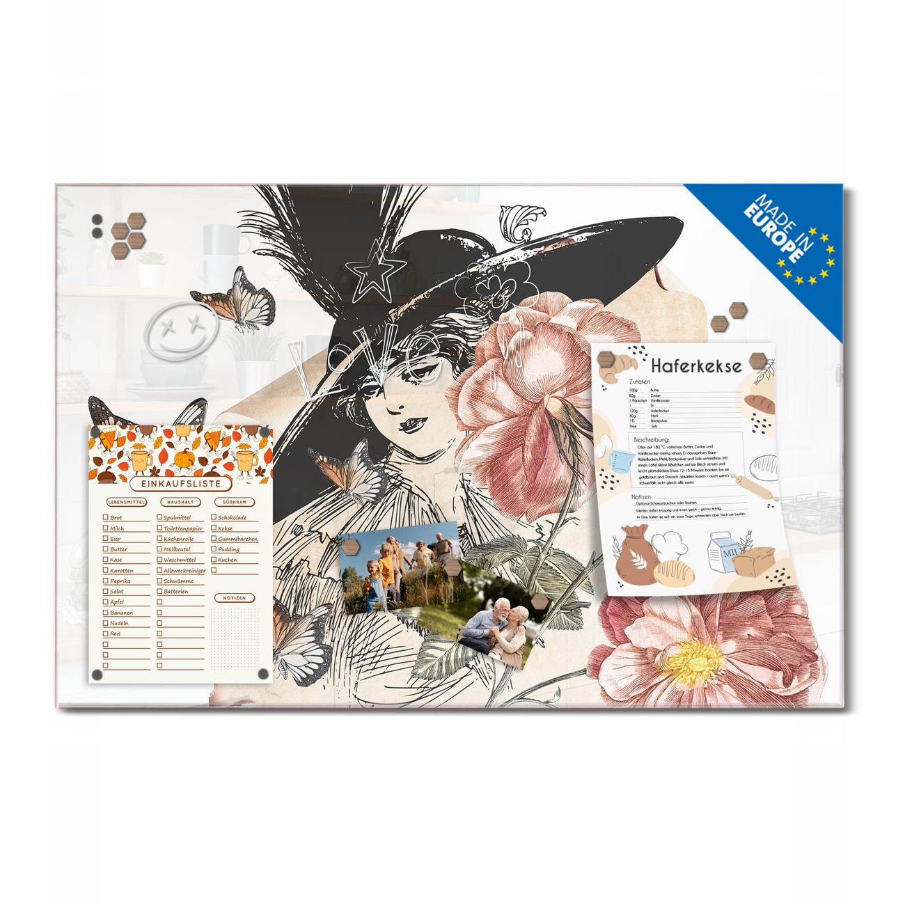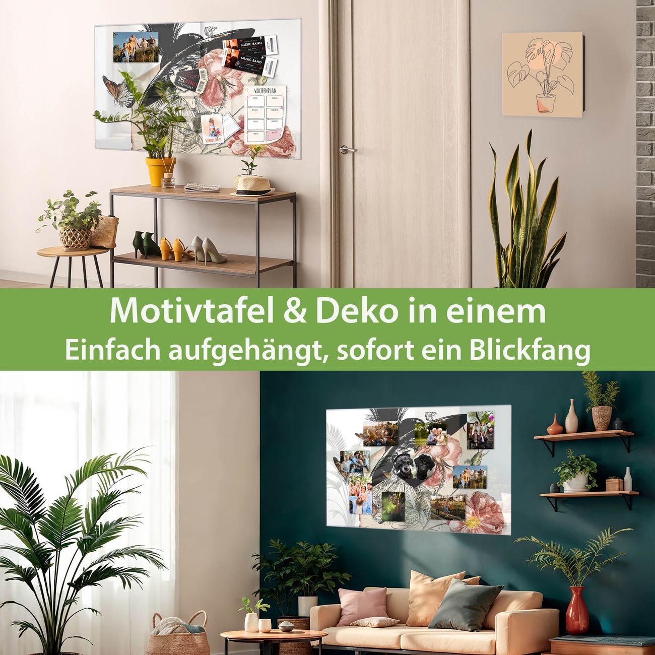 Glas Magnettafel im Querformat Motiv Elegante Retro-Blütenpracht