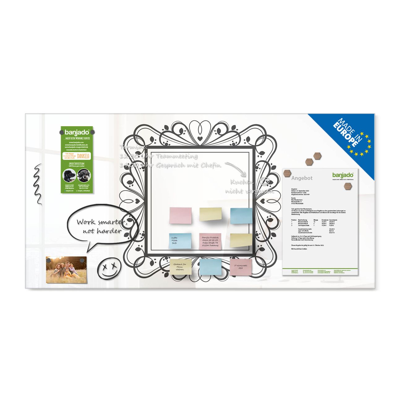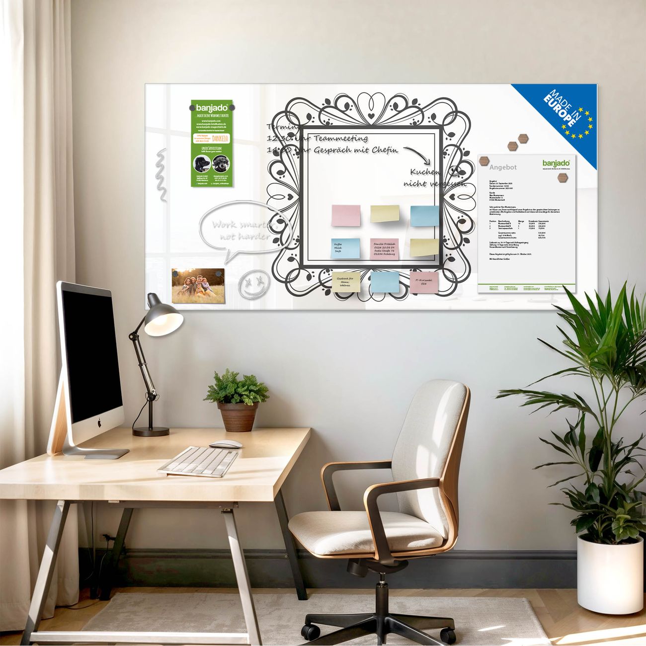 Jede Glas Magnettafel wird in unserer Werkstatt von Hand gefertigt und sorgfältig geprüft. So erhalten Sie ein echtes Qualitätsprodukt, das Funktion und Ästhetik perfekt vereint.?? Warum banjado?