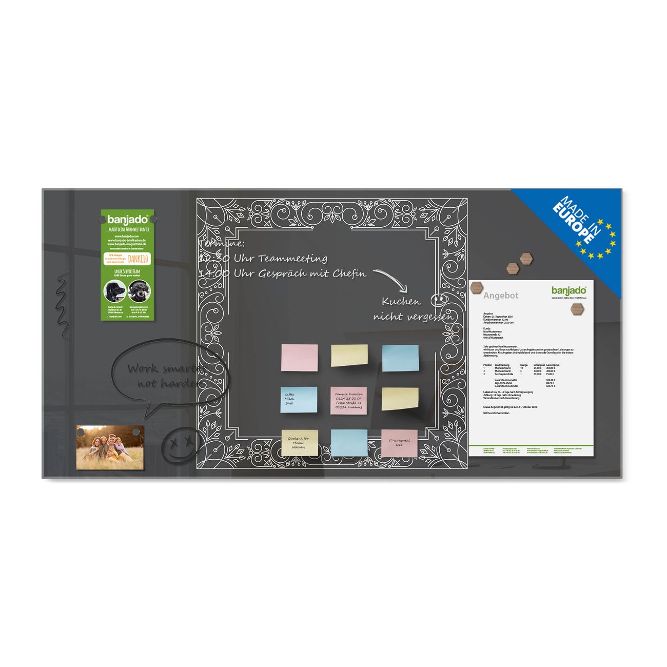 Jede Glas Magnettafel wird in unserer Werkstatt von Hand gefertigt und sorgfältig geprüft. So erhalten Sie ein echtes Qualitätsprodukt, das Funktion und Ästhetik perfekt vereint.?? Warum banjado?