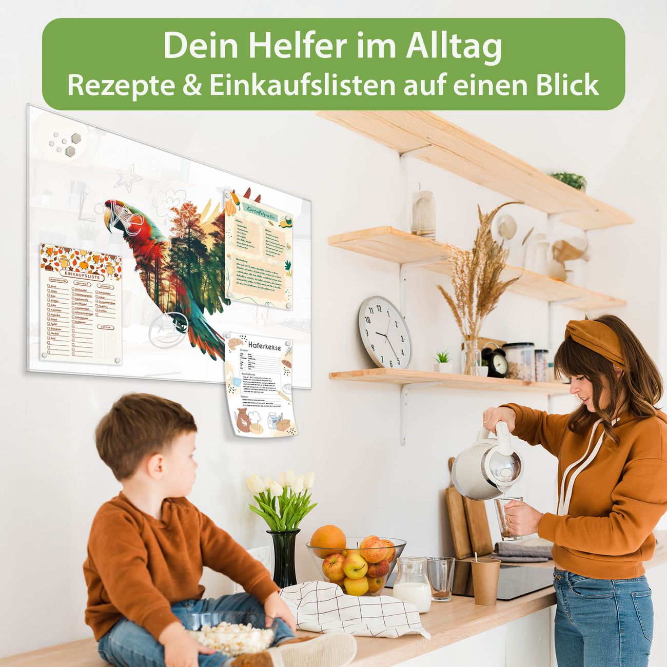 Ein Stück Design, das Ihren Alltag organisiert. Schreiben, heften, inspirieren - alles an einem Ort. Qualität, die man spürt. Montage leicht gemacht. Handwerk mit Herz - veredelt in Sachsen. Einzigartiges Design mit Motiv Motiv Exotischer Freiheit Beschreibbare Glasoberfläche, leicht zu reinigen Starke Magnetkraft durch Stahlrückwand Inklusive 4 Neodym-Magneten Flexible Montageoptionen Handveredelt in Sachsen - Qualität, die bleibt