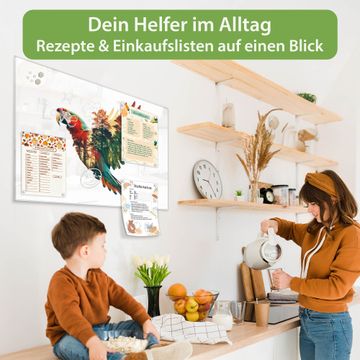 Auf der glatten Glasoberfläche lassen sich Termine, Rezepte oder Notizen ganz einfach mit Kreidestiften festhalten und rückstandslos entfernen. Starke Neodym-Magnete halten Ihre wichtigsten Erinnerungen sicher an Ort und Stelle. So entsteht Ihre ganz persönliche Ideenwand - jeden Tag neu.