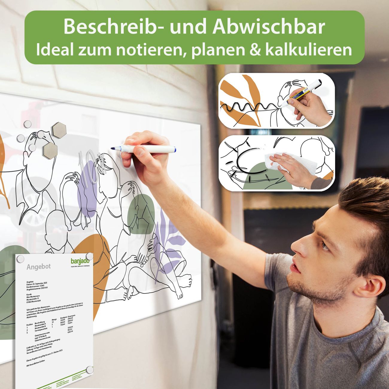 Jede Glas Magnettafel wird in unserer Werkstatt von Hand gefertigt und sorgfältig geprüft. So erhalten Sie ein echtes Qualitätsprodukt, das Funktion und Ästhetik perfekt vereint.?? Warum banjado?