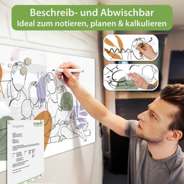 Auf der glatten Glasoberfläche lassen sich Termine, Rezepte oder Notizen ganz einfach mit Kreidestiften festhalten und rückstandslos entfernen. Starke Neodym-Magnete halten Ihre wichtigsten Erinnerungen sicher an Ort und Stelle. So entsteht Ihre ganz persönliche Ideenwand - jeden Tag neu.