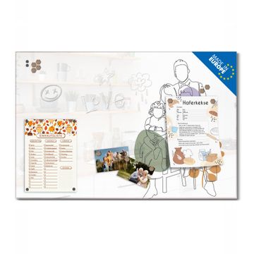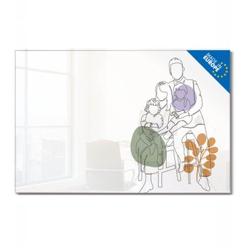 Material: 4mm Sicherheitsglas mit Metallrückwand Eigenschaften: beschreibbar, magnetisch, kratzfest Maße: 60x40x0,6cm, 3,6kg schwer Motiv Nummer 13298 Familienglück Illustration Zubehör: inklusive 4 Neodym-Magnete