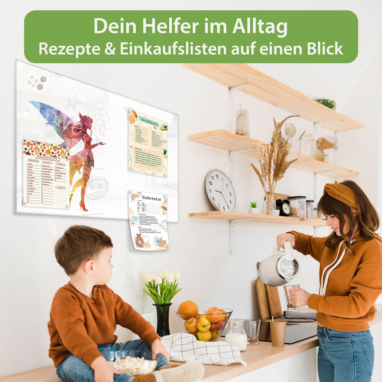 Ein Stück Design, das Ihren Alltag organisiert. Schreiben, heften, inspirieren - alles an einem Ort. Qualität, die man spürt. Montage leicht gemacht. Handwerk mit Herz - veredelt in Sachsen. Einzigartiges Design mit Motiv Motiv Fantasievolle Fee Beschreibbare Glasoberfläche, leicht zu reinigen Starke Magnetkraft durch Stahlrückwand Inklusive 4 Neodym-Magneten Flexible Montageoptionen Handveredelt in Sachsen - Qualität, die bleibt