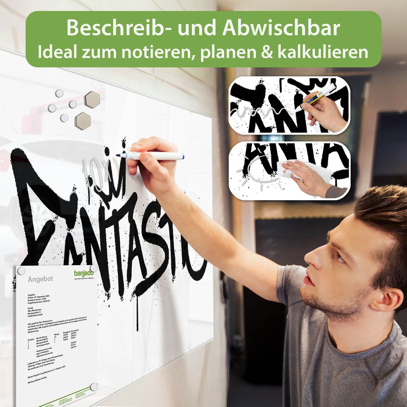 Glas Magnettafel im Querformat Motiv Fantastic Graffiti