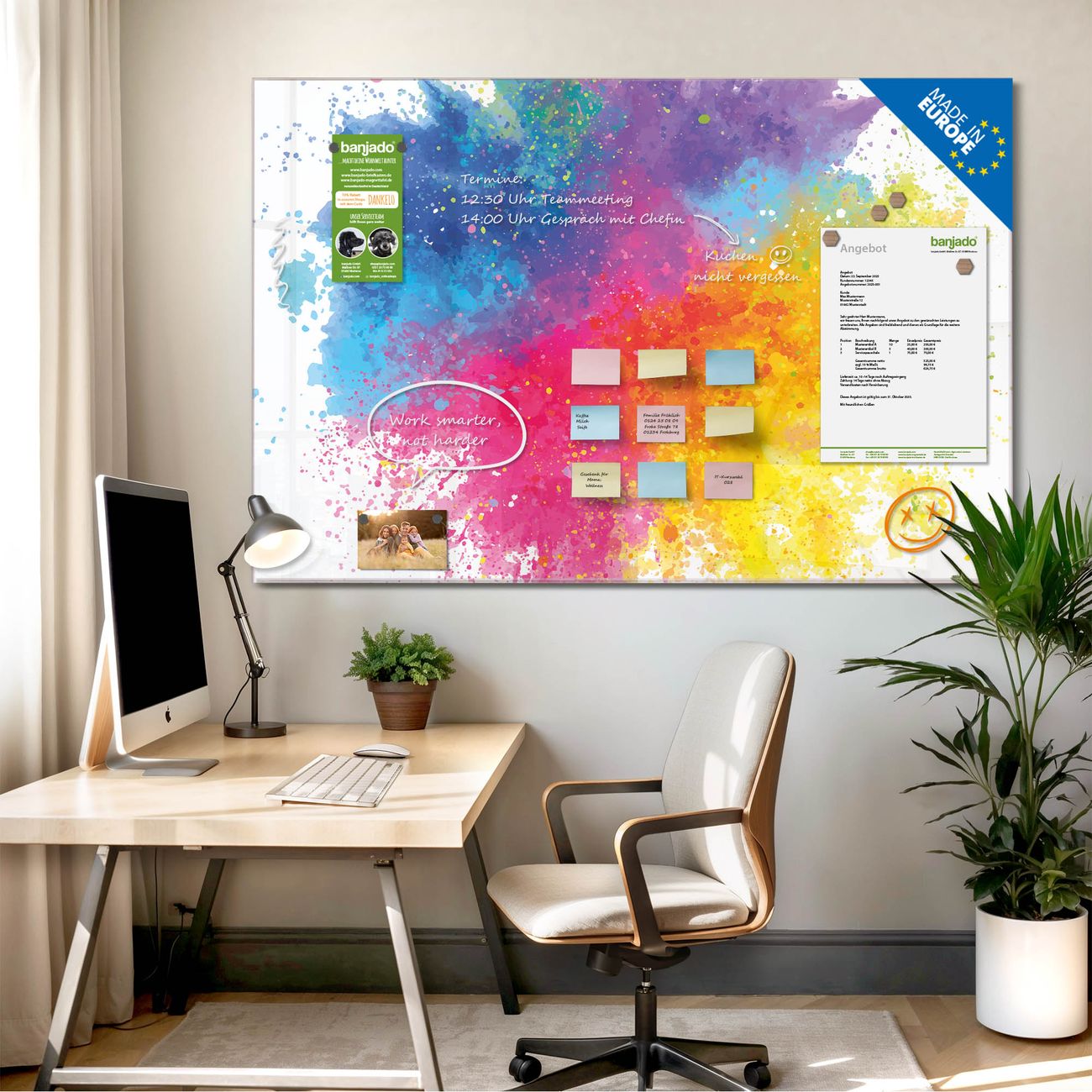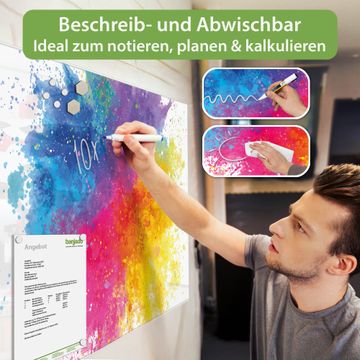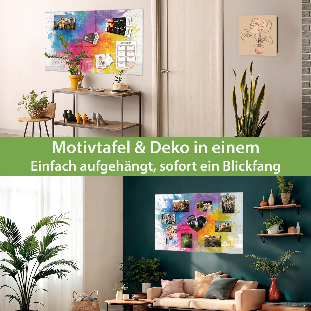 Die banjado Glas Magnettafel mit dem Motiv Motiv Farbexplosion 2 verbindet Funktionalität mit Stil. Sie ersetzt das Zettelchaos durch klare Strukturen und bringt dabei eine warme, natürliche Atmosphäre in Ihr Zuhause. Ob im Büro, in der Küche oder im Eingangsbereich - dieses Design-Board zieht Blicke an und sorgt für Ordnung mit Charakter.