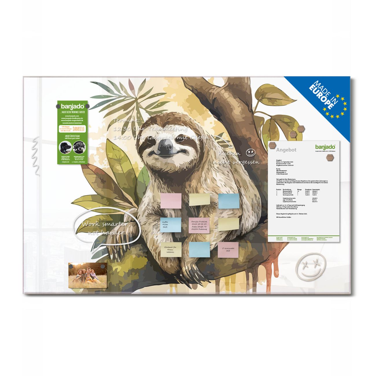Glas Magnettafel im Querformat Motiv Faultier im Baum
