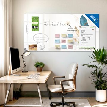 Auf der glatten Glasoberfläche lassen sich Termine, Rezepte oder Notizen ganz einfach mit Kreidestiften festhalten und rückstandslos entfernen. Starke Neodym-Magnete halten Ihre wichtigsten Erinnerungen sicher an Ort und Stelle. So entsteht Ihre ganz persönliche Ideenwand - jeden Tag neu.
