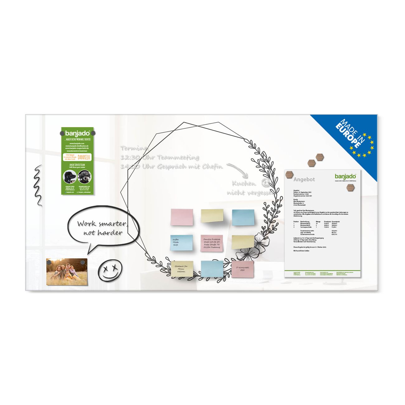Jede Glas Magnettafel wird in unserer Werkstatt von Hand gefertigt und sorgfältig geprüft. So erhalten Sie ein echtes Qualitätsprodukt, das Funktion und Ästhetik perfekt vereint.?? Warum banjado?