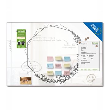 Die banjado Glas Magnettafel mit dem Motiv Motiv Floral Geometric Frame verbindet Funktionalität mit Stil. Sie ersetzt das Zettelchaos durch klare Strukturen und bringt dabei eine warme, natürliche Atmosphäre in Ihr Zuhause. Ob im Büro, in der Küche oder im Eingangsbereich - dieses Design-Board zieht Blicke an und sorgt für Ordnung mit Charakter.