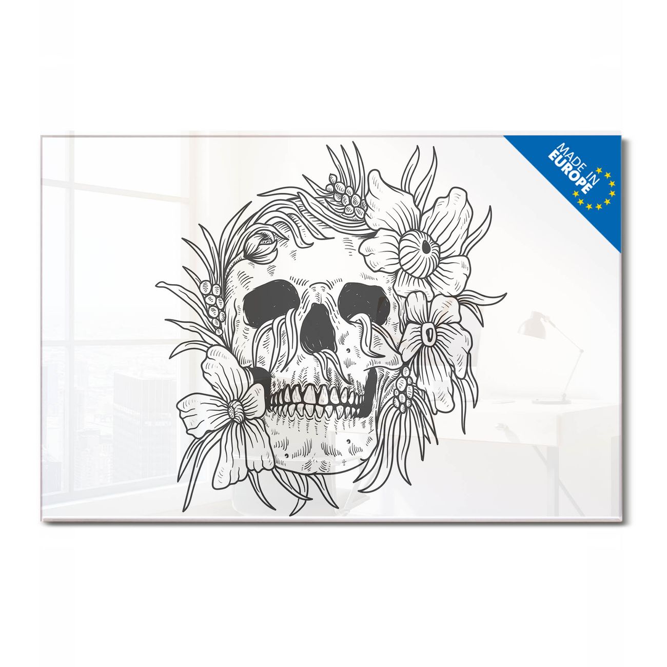 Glas Magnettafel im Querformat Motiv Floral Skull 2