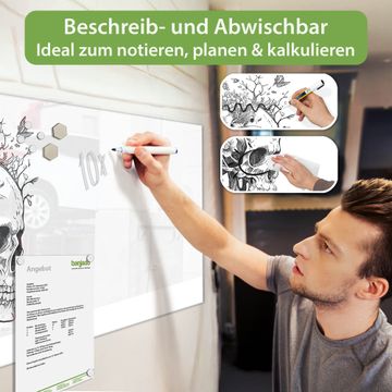 Die banjado Glas Magnettafel mit dem Motiv Motiv Floral Skull verbindet Funktionalität mit Stil. Sie ersetzt das Zettelchaos durch klare Strukturen und bringt dabei eine warme, natürliche Atmosphäre in Ihr Zuhause. Ob im Büro, in der Küche oder im Eingangsbereich - dieses Design-Board zieht Blicke an und sorgt für Ordnung mit Charakter.