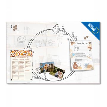 Auf der glatten Glasoberfläche lassen sich Termine, Rezepte oder Notizen ganz einfach mit Kreidestiften festhalten und rückstandslos entfernen. Starke Neodym-Magnete halten Ihre wichtigsten Erinnerungen sicher an Ort und Stelle. So entsteht Ihre ganz persönliche Ideenwand - jeden Tag neu.