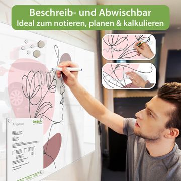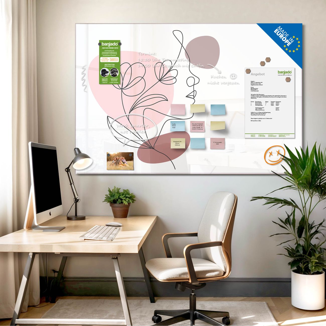 Die banjado Glas Magnettafel mit dem Motiv Motiv Florale Line Art verbindet Funktionalität mit Stil. Sie ersetzt das Zettelchaos durch klare Strukturen und bringt dabei eine warme, natürliche Atmosphäre in Ihr Zuhause. Ob im Büro, in der Küche oder im Eingangsbereich - dieses Design-Board zieht Blicke an und sorgt für Ordnung mit Charakter.