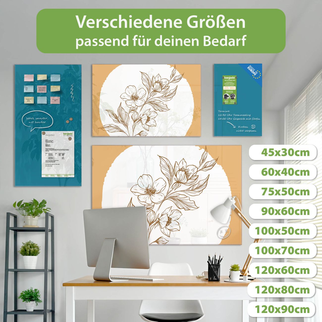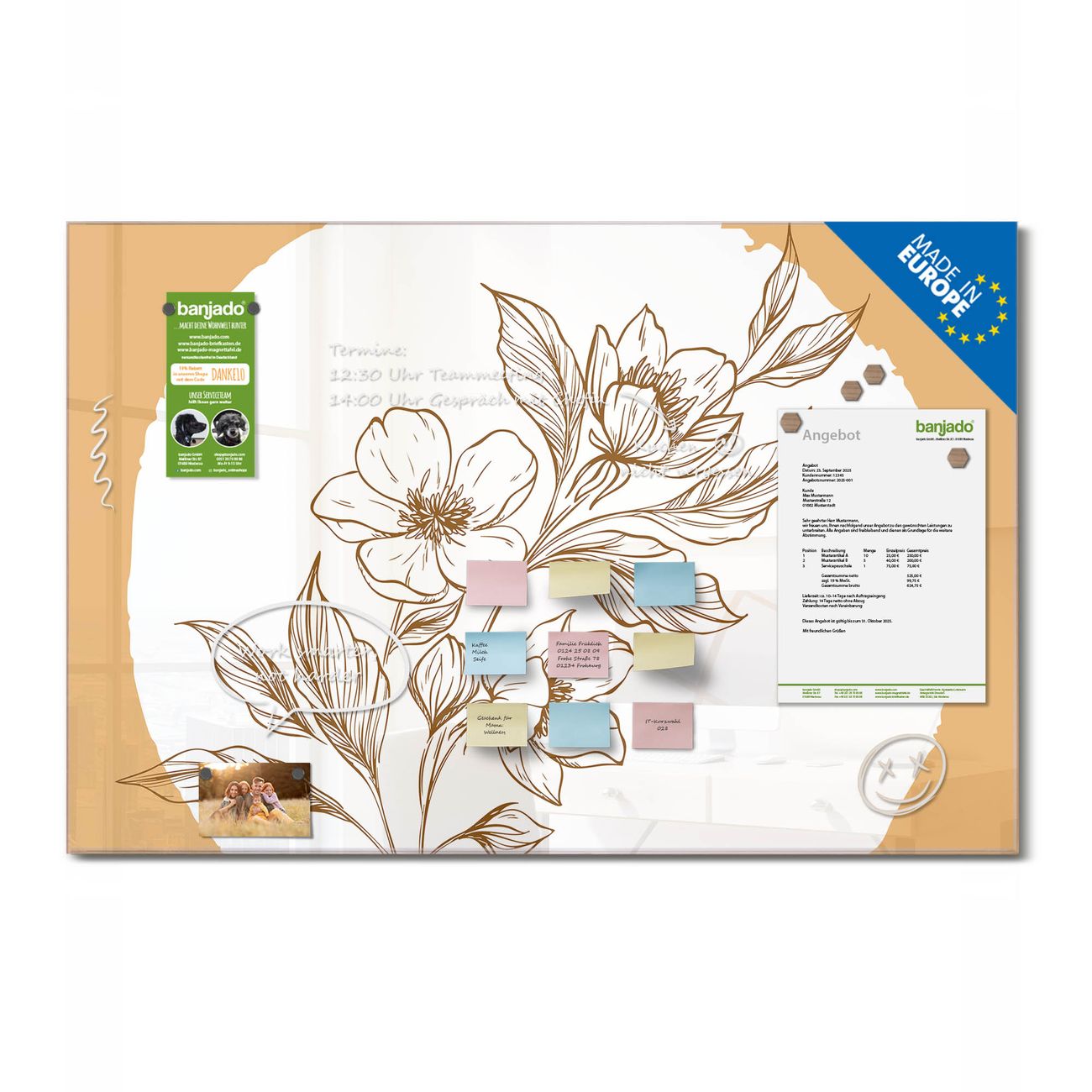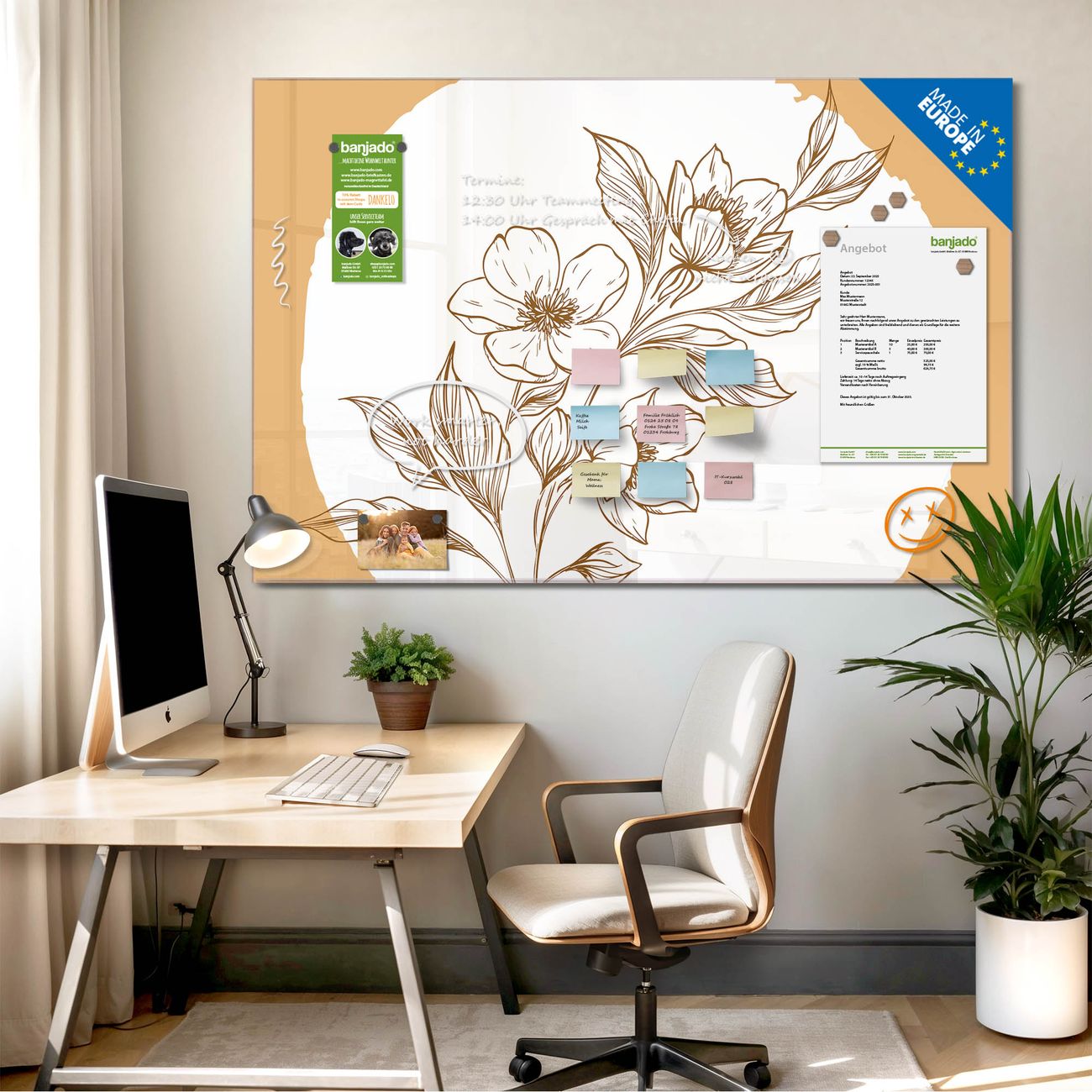 Glas Magnettafel im Querformat Motiv Florale Skizze