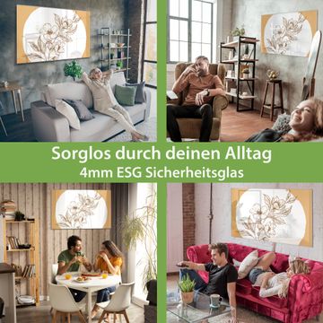 Material: 4mm Sicherheitsglas mit Metallrückwand Eigenschaften: beschreibbar, magnetisch, kratzfest Maße: 120x80x0,6cm, 14,40kg schwer Motiv Nummer 13221 Florale Skizze Zubehör: inklusive 4 Neodym-Magnete