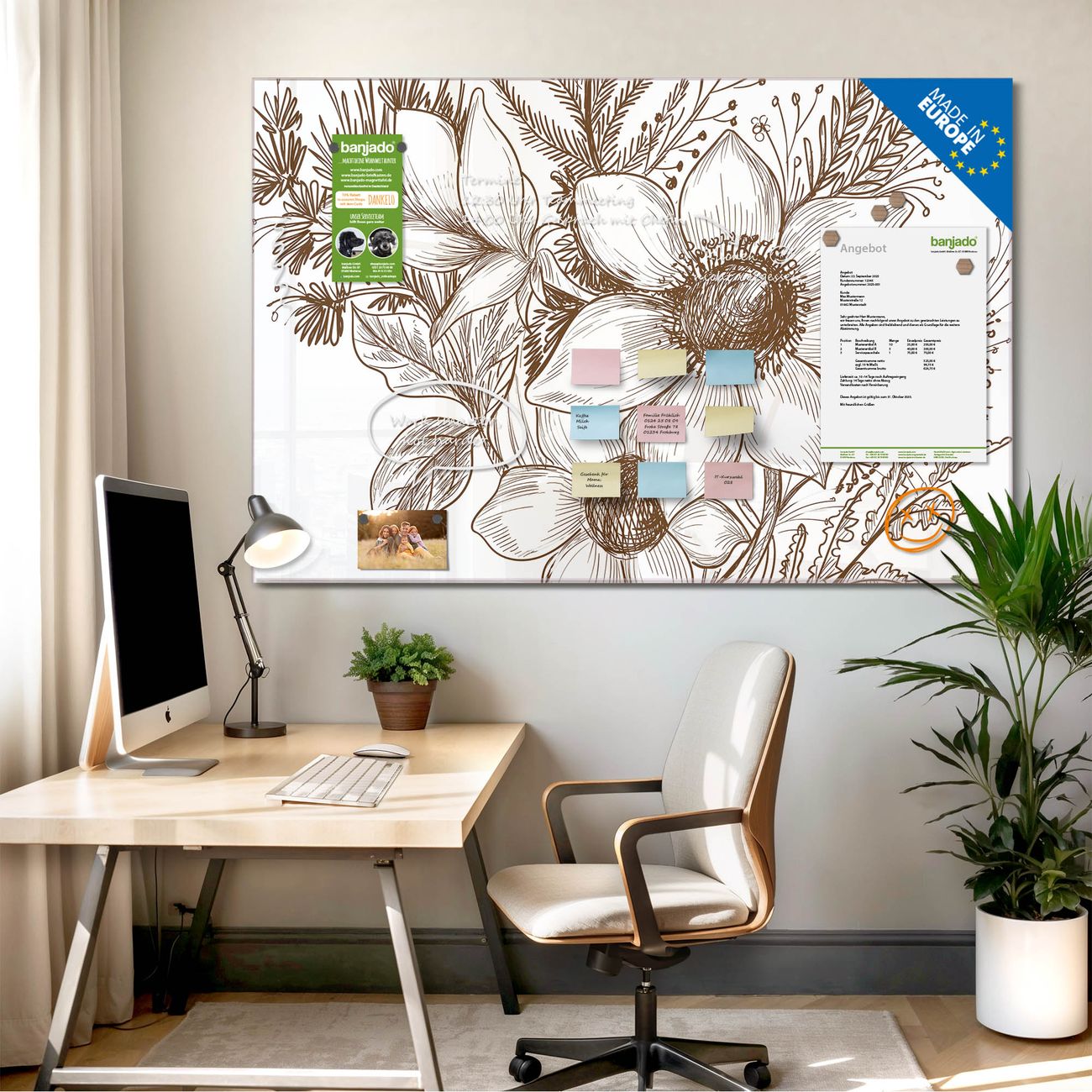 Glas Magnettafel im Querformat Motiv Florale Zeichnung