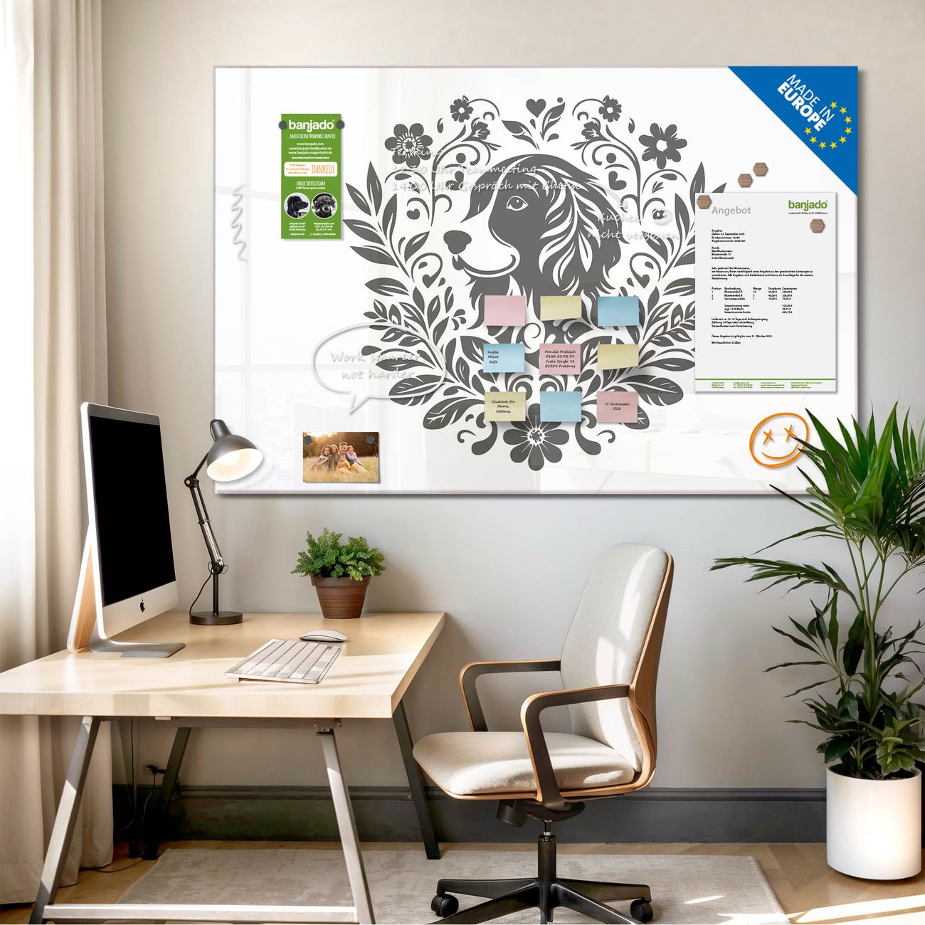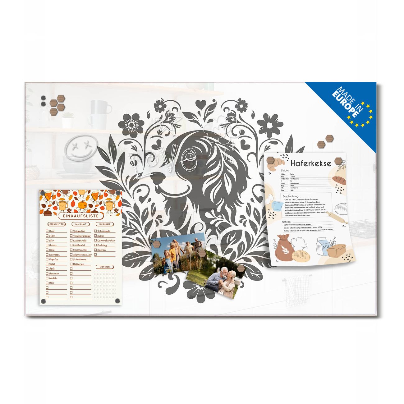 Glas Magnettafel im Querformat Motiv Floraler Hund