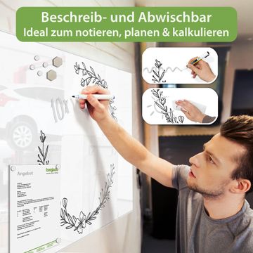Gefertigt aus gehärtetem Sicherheitsglas mit einer magnetischen Rückwand aus Stahl überzeugt diese Magnettafel durch Stabilität und Langlebigkeit. Die Oberfläche bleibt dauerhaft brillant und pflegeleicht, selbst bei täglicher Nutzung.