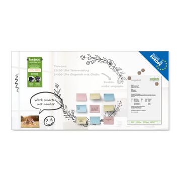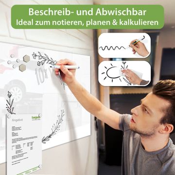 Auf der glatten Glasoberfläche lassen sich Termine, Rezepte oder Notizen ganz einfach mit Kreidestiften festhalten und rückstandslos entfernen. Starke Neodym-Magnete halten Ihre wichtigsten Erinnerungen sicher an Ort und Stelle. So entsteht Ihre ganz persönliche Ideenwand - jeden Tag neu.