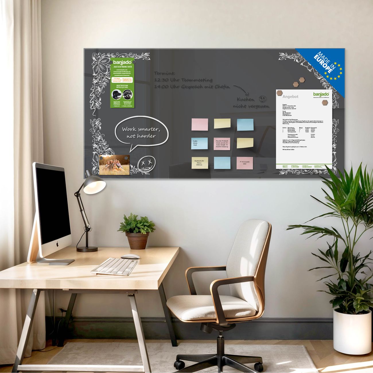 Jede Glas Magnettafel wird in unserer Werkstatt von Hand gefertigt und sorgfältig geprüft. So erhalten Sie ein echtes Qualitätsprodukt, das Funktion und Ästhetik perfekt vereint.?? Warum banjado?