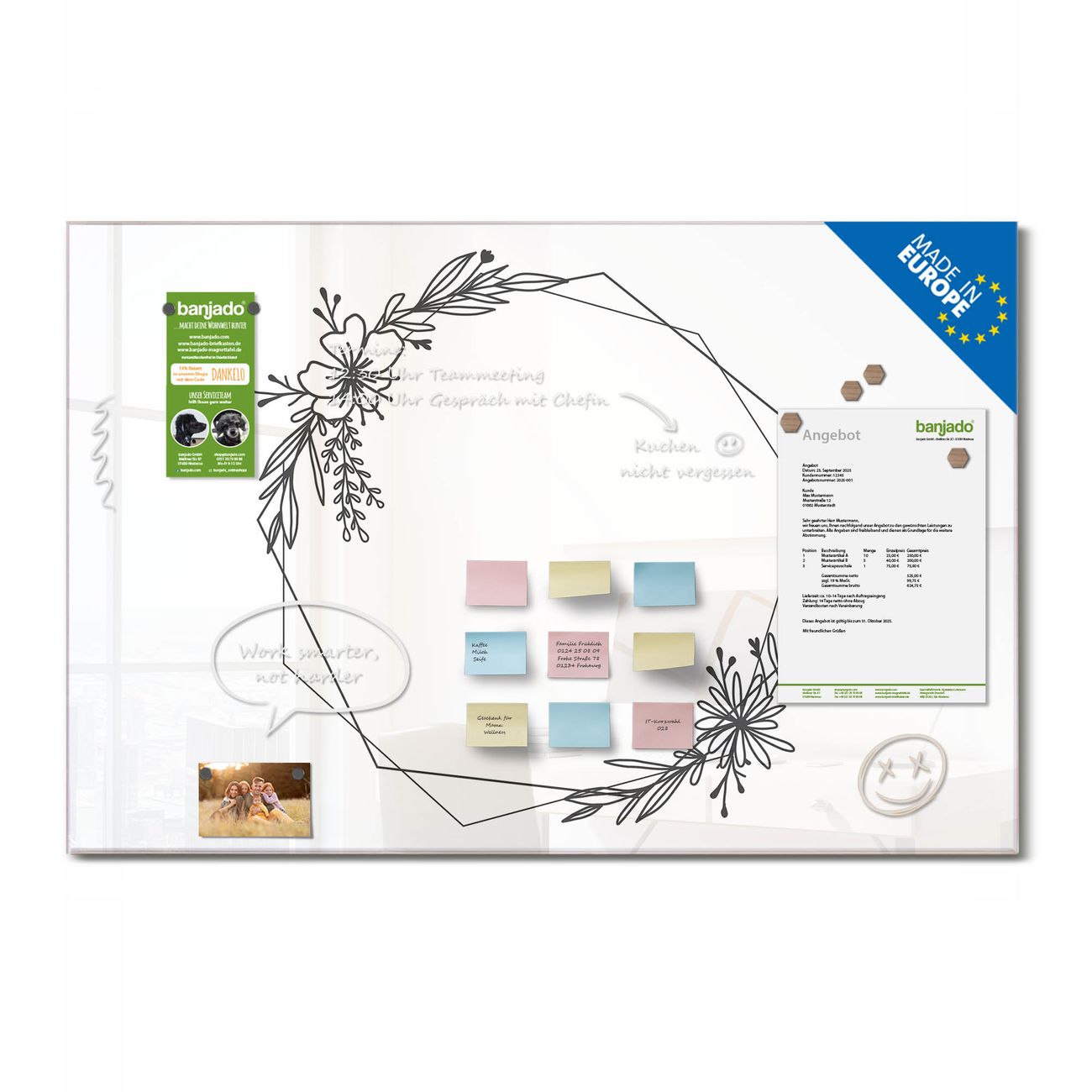 Glas Magnettafel im Querformat Motiv Floraler Rahmen