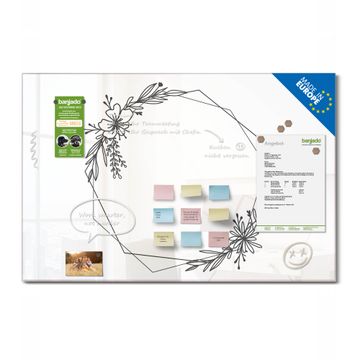 Die banjado Glas Magnettafel mit dem Motiv Motiv Floraler Rahmen verbindet Funktionalität mit Stil. Sie ersetzt das Zettelchaos durch klare Strukturen und bringt dabei eine warme, natürliche Atmosphäre in Ihr Zuhause. Ob im Büro, in der Küche oder im Eingangsbereich - dieses Design-Board zieht Blicke an und sorgt für Ordnung mit Charakter.