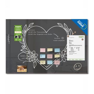 Glas Magnettafel im Querformat Motiv Florales Herzdesign