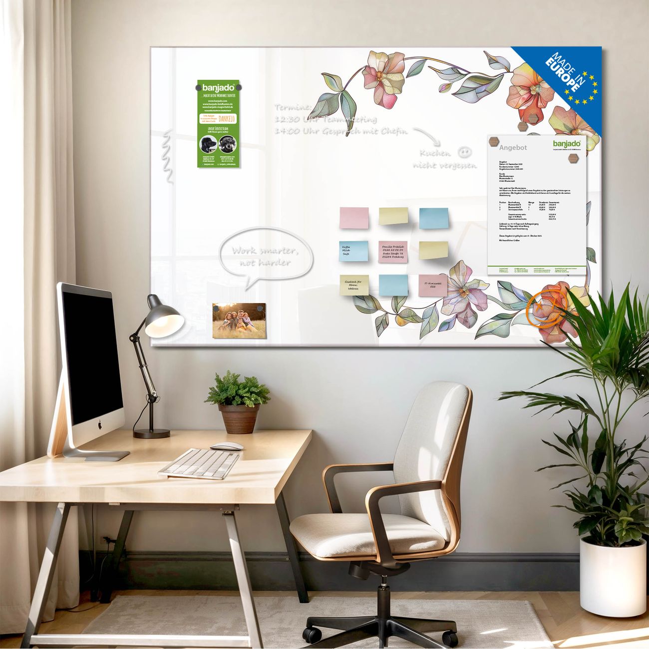 Glas Magnettafel im Querformat Motiv Florales Kunstwerk