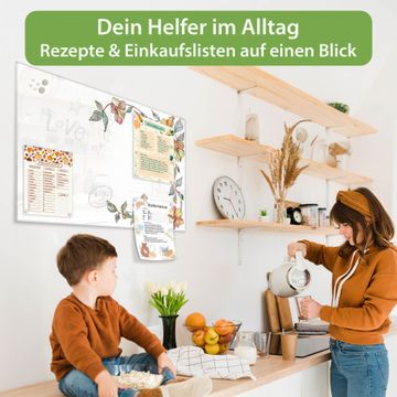 Auf der glatten Glasoberfläche lassen sich Termine, Rezepte oder Notizen ganz einfach mit Kreidestiften festhalten und rückstandslos entfernen. Starke Neodym-Magnete halten Ihre wichtigsten Erinnerungen sicher an Ort und Stelle. So entsteht Ihre ganz persönliche Ideenwand - jeden Tag neu.