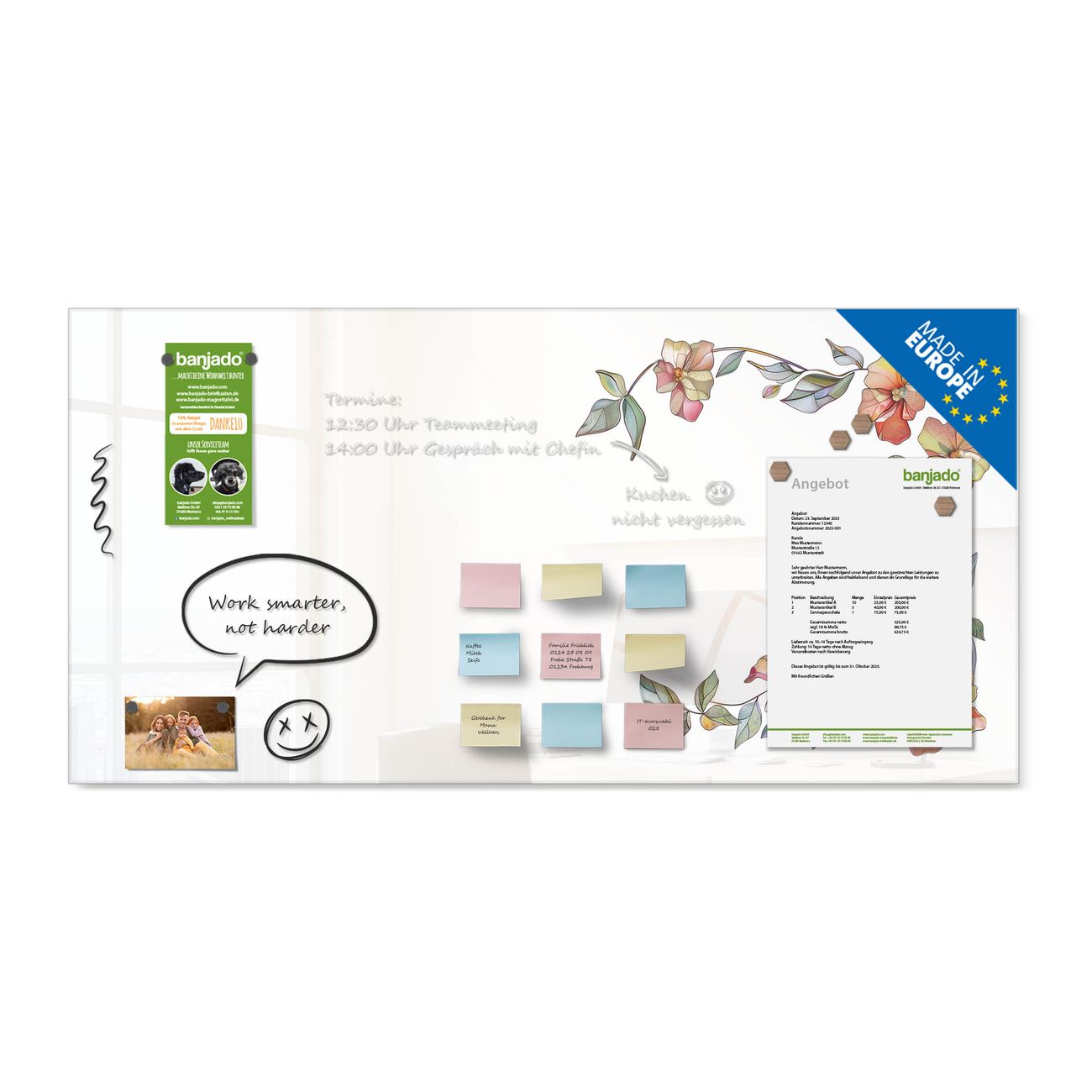 Glas Magnettafel im Querformat Motiv Florales Kunstwerk