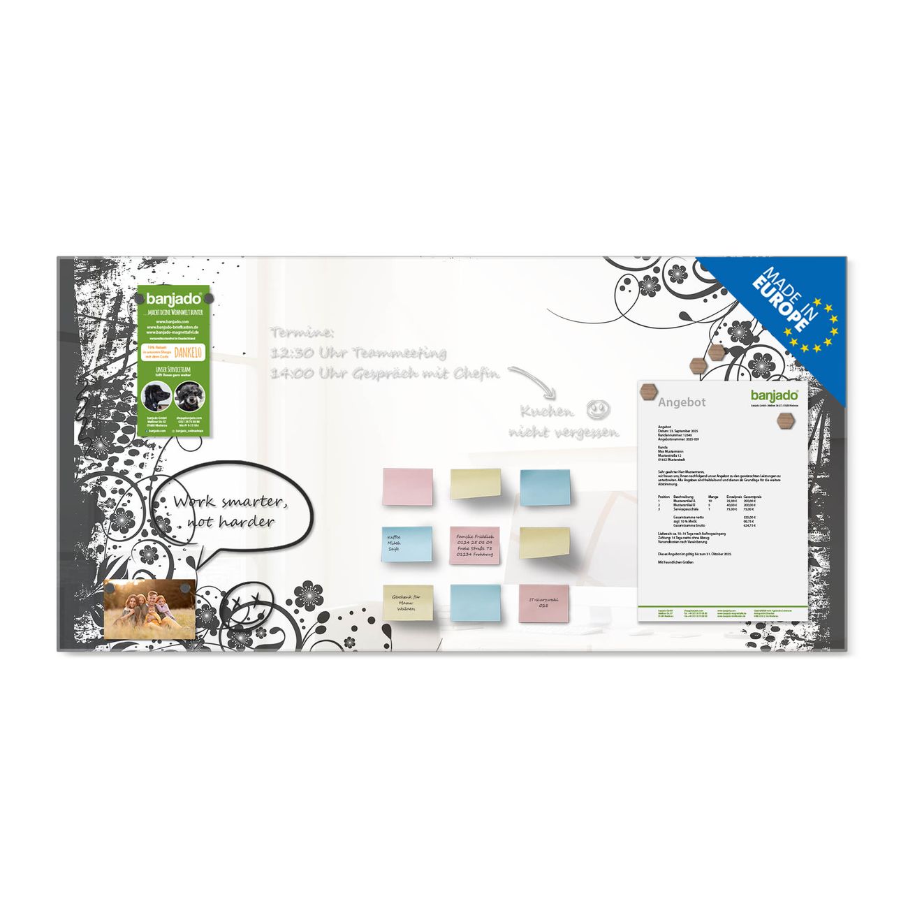 Glas Magnettafel im Querformat Motiv Florales Schwarz-Weiß Muster