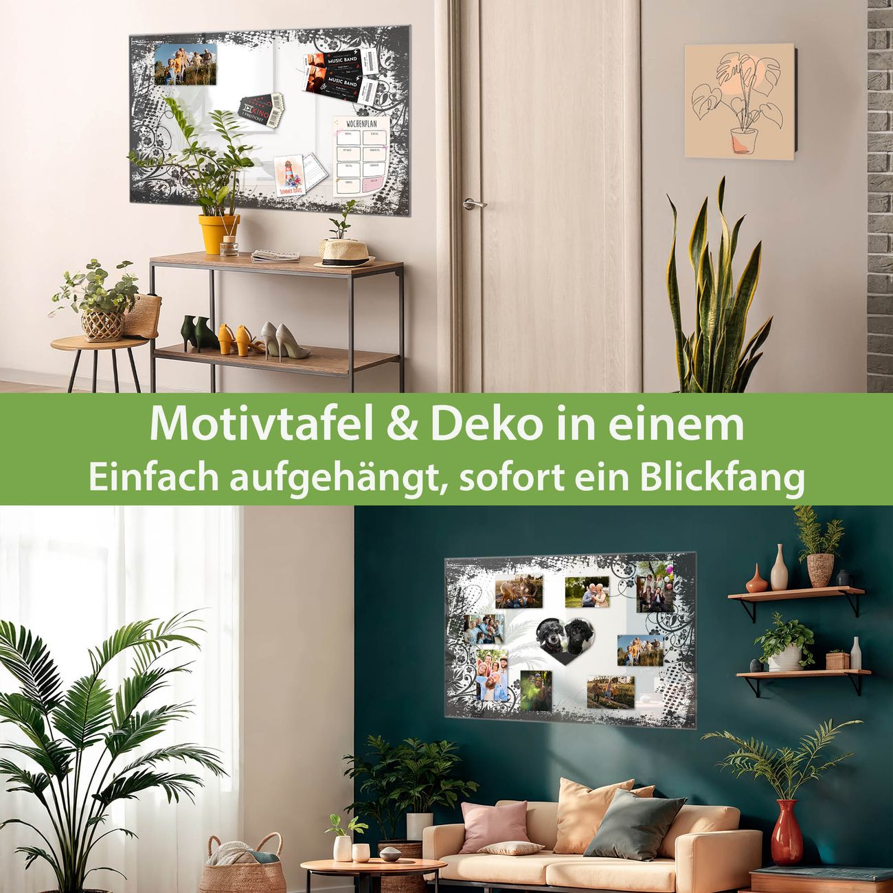 Dank der flachen Bauweise wirkt die Magnetwand fast schwebend an der Wand. Sie können sie mit Montagekleber elegant befestigen oder mit einem passenden Set klassisch verschrauben - beides sorgt für sicheren Halt und eine dezente Optik.