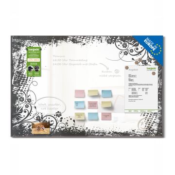 Glas Magnettafel im Querformat Motiv Florales Schwarz-Weiß Muster