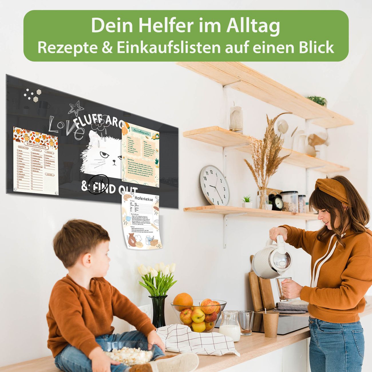 Ein Stück Design, das Ihren Alltag organisiert. Schreiben, heften, inspirieren - alles an einem Ort. Qualität, die man spürt. Montage leicht gemacht. Handwerk mit Herz - veredelt in Sachsen. Einzigartiges Design mit Motiv Motiv Fluff Around Cat Beschreibbare Glasoberfläche, leicht zu reinigen Starke Magnetkraft durch Stahlrückwand Inklusive 4 Neodym-Magneten Flexible Montageoptionen Handveredelt in Sachsen - Qualität, die bleibt