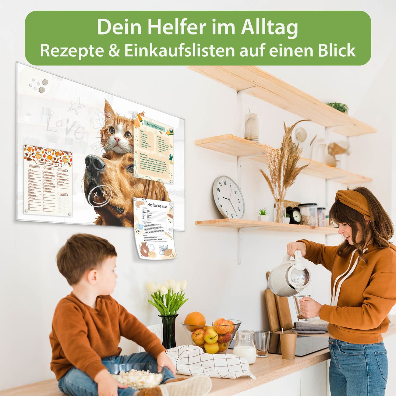 Ein Stück Design, das Ihren Alltag organisiert. Schreiben, heften, inspirieren - alles an einem Ort. Qualität, die man spürt. Montage leicht gemacht. Handwerk mit Herz - veredelt in Sachsen. Einzigartiges Design mit Motiv Motiv Freundschaft in Fell Beschreibbare Glasoberfläche, leicht zu reinigen Starke Magnetkraft durch Stahlrückwand Inklusive 4 Neodym-Magneten Flexible Montageoptionen Handveredelt in Sachsen - Qualität, die bleibt